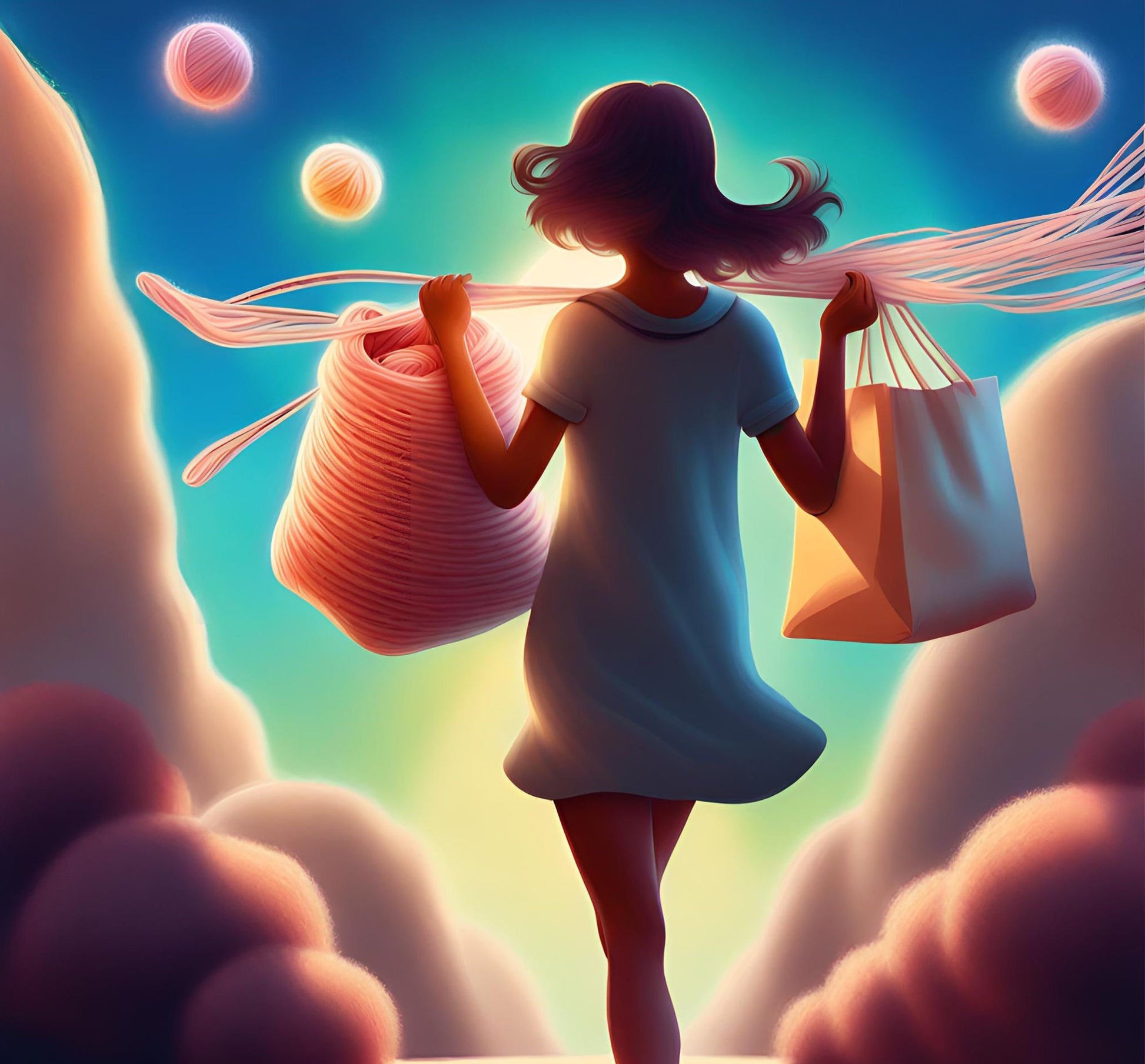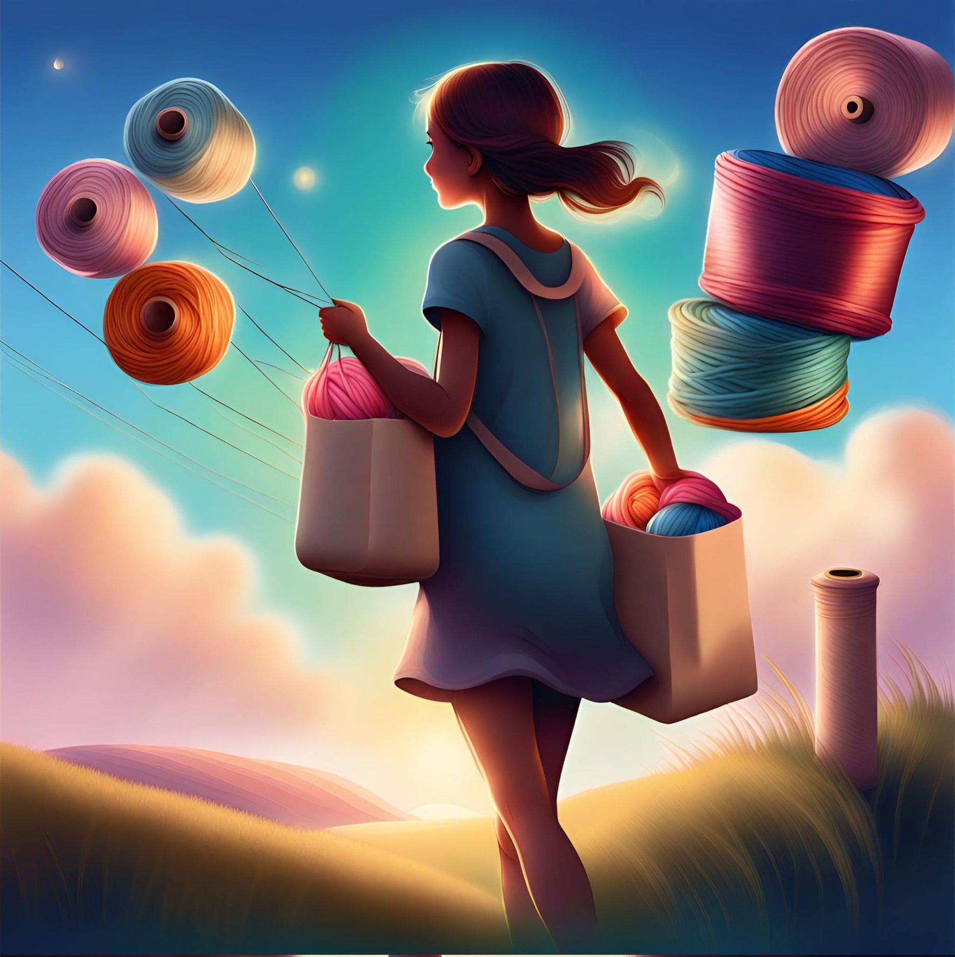 Tyttö ja lankakerät Kantokassi 🧶✨